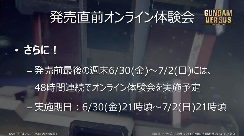 PS4『ガンダムバーサス』明日からオンライン体験会の追加実施が決定!発売前は48時間プレイも!
