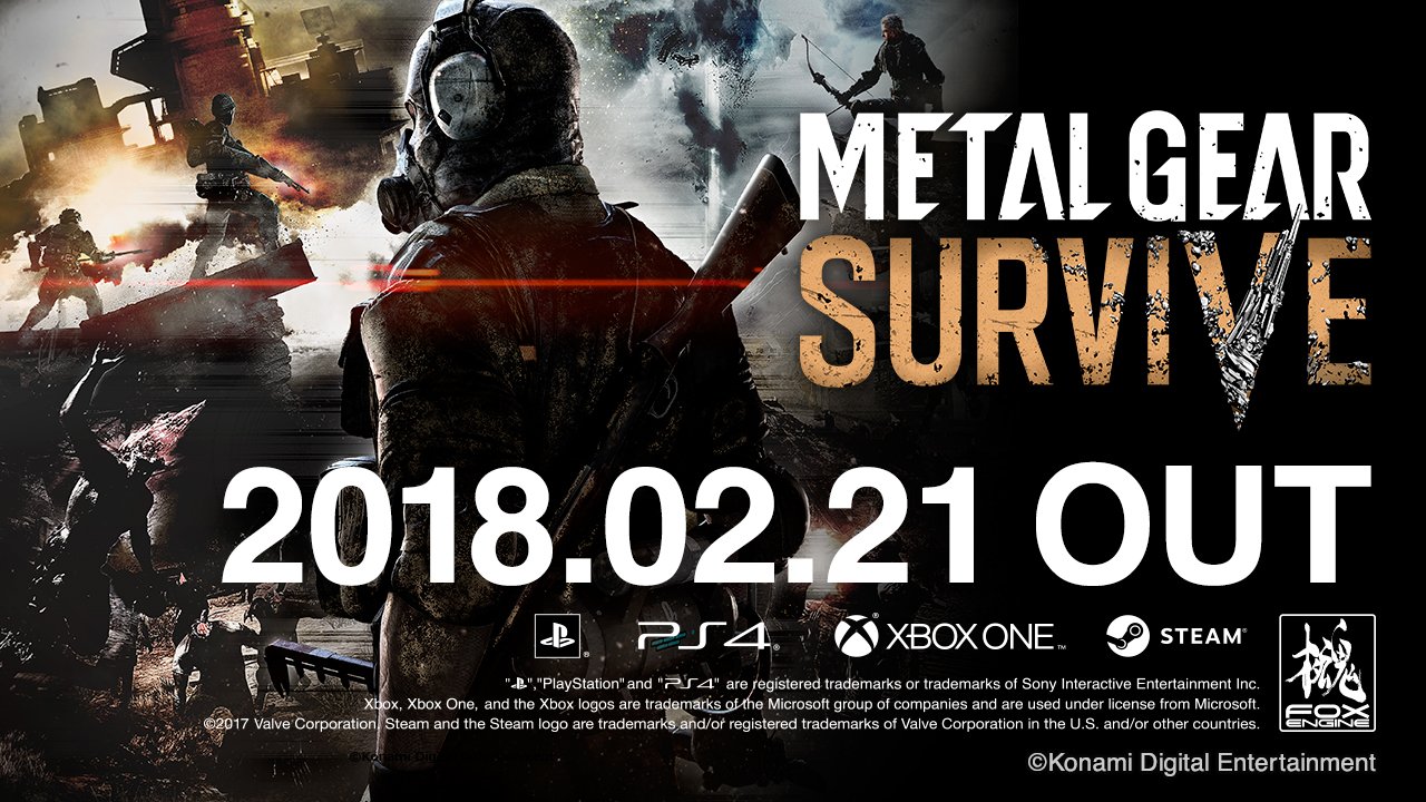 『METAL GEAR SURVIVE』を2018年2月21日に発売致します。詳細は後ほど公式HPにて公開いたします。また、発売に先駆け東京・大阪・名古屋にて先行体験会を実施します。こちらについても後ほど公式HPで公開します。少しだけ情報の先出しです。(J) #MGSurvive pic.twitter.com/4gxTLIKVFv