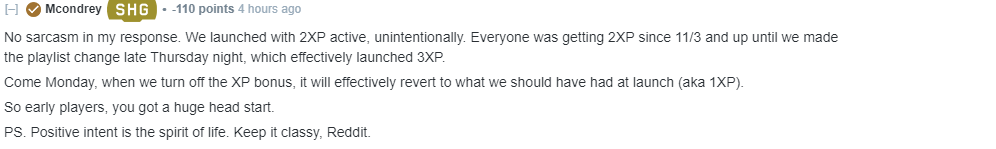 彼によると誤って3倍のXPイベントを発動させてしまったとのこと。コンドリー氏は現地時間の来週月曜の午前中まではこの状態のまま開催すると明らかにし、賞賛の声が寄せられています。