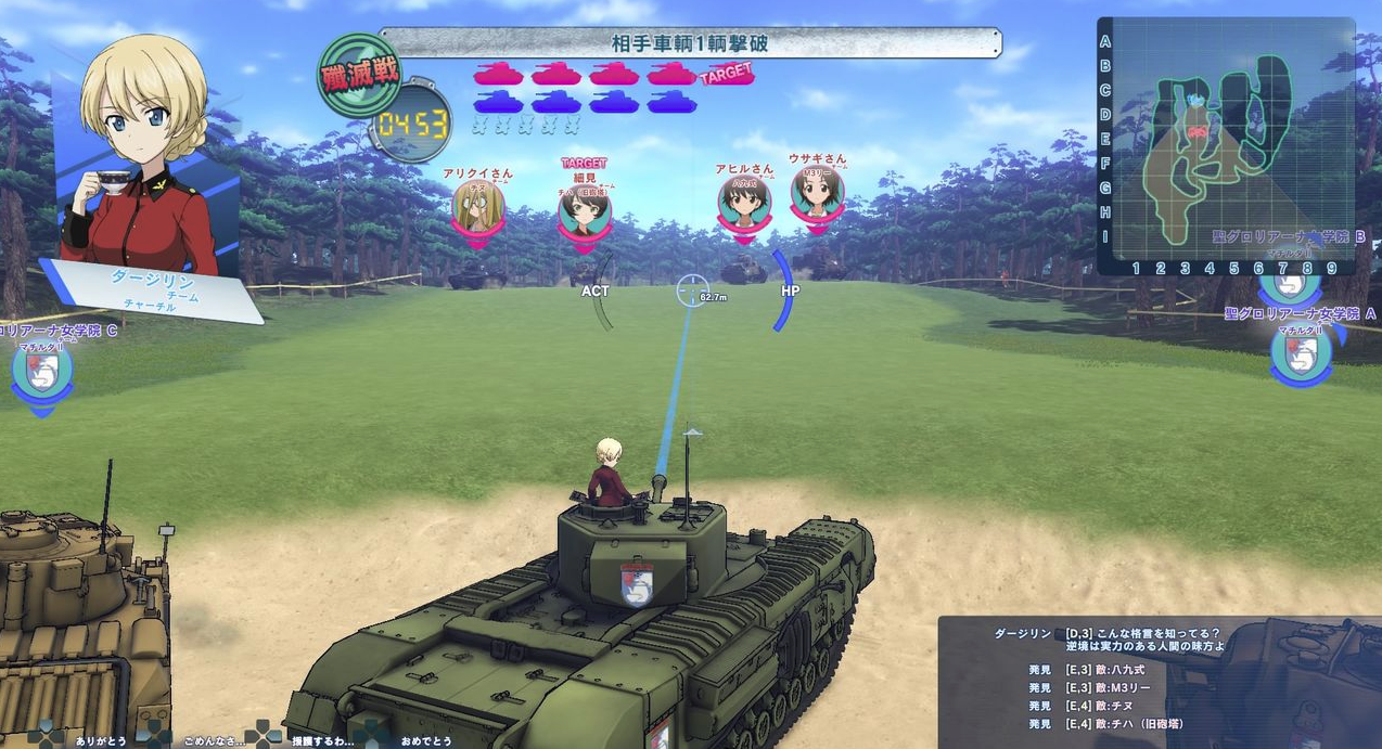 フラッグ車を擁する聖グロリアーナ女学院を大洗女子学園と知波単学園が追いつめ、膠着状態となった場面。しかし、知波単学園が突撃を始めてしまい…