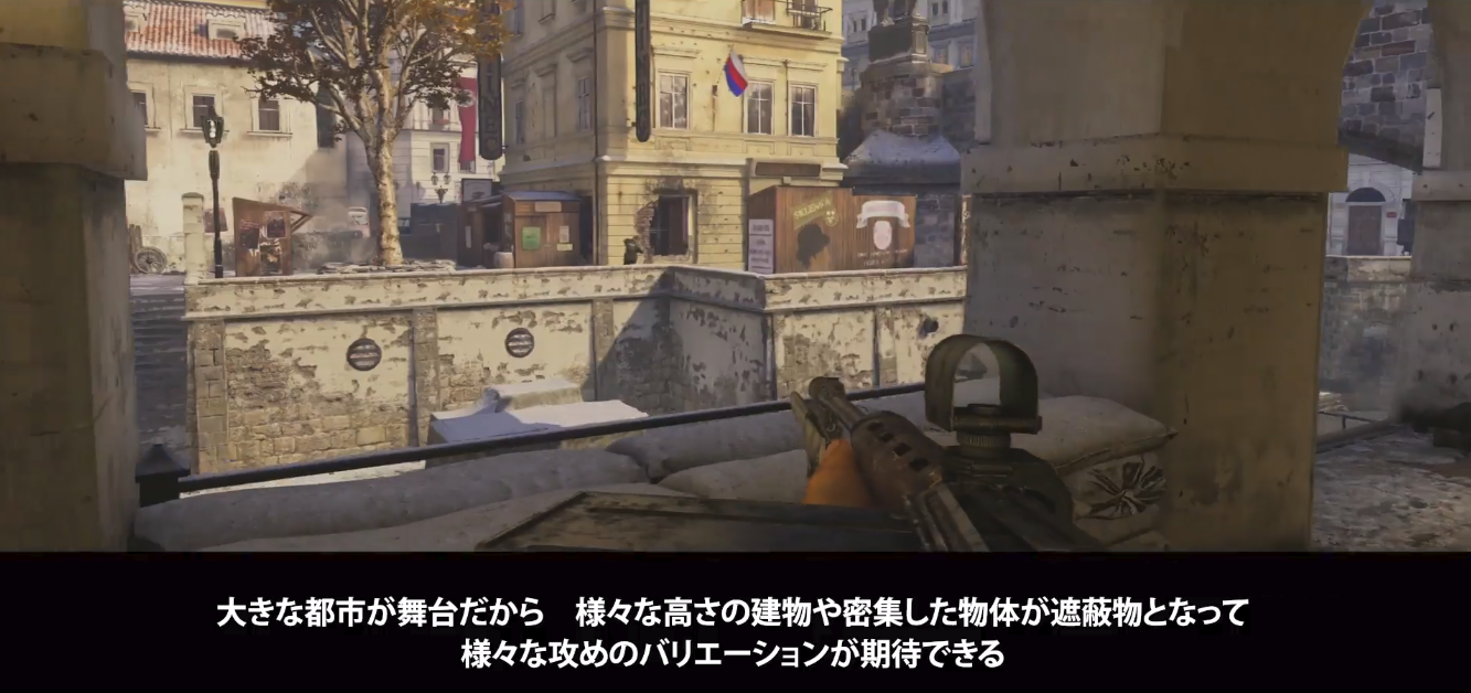 ドイツ高官の暗殺計画"エンスラポイド作戦"に影響を受け作成されたプラハ都市部のマップ。川で分けられた中央レーンがあり、スナイパーの長距離狙撃が有利になる長い経路が特徴。