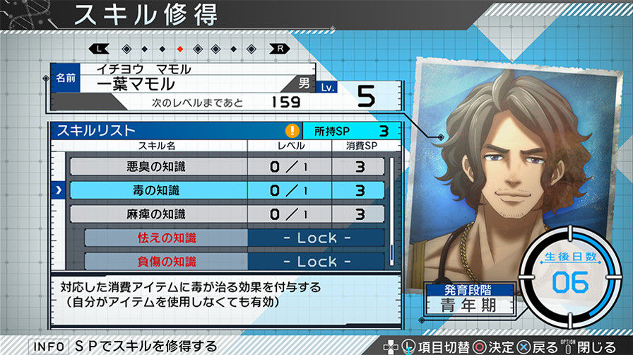 本作ではレベルアップによるステータス上昇はなく、基本ステータスは年代ごとに固定となるので「シガバネボーナス」と「スキル」の修得がキャラクターの育成要素となる。