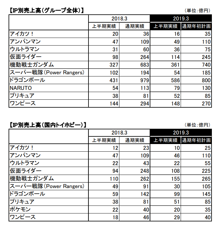 バンナム今年度半年分の売上の内訳、ドラゴンボールが凄すぎワロタ
