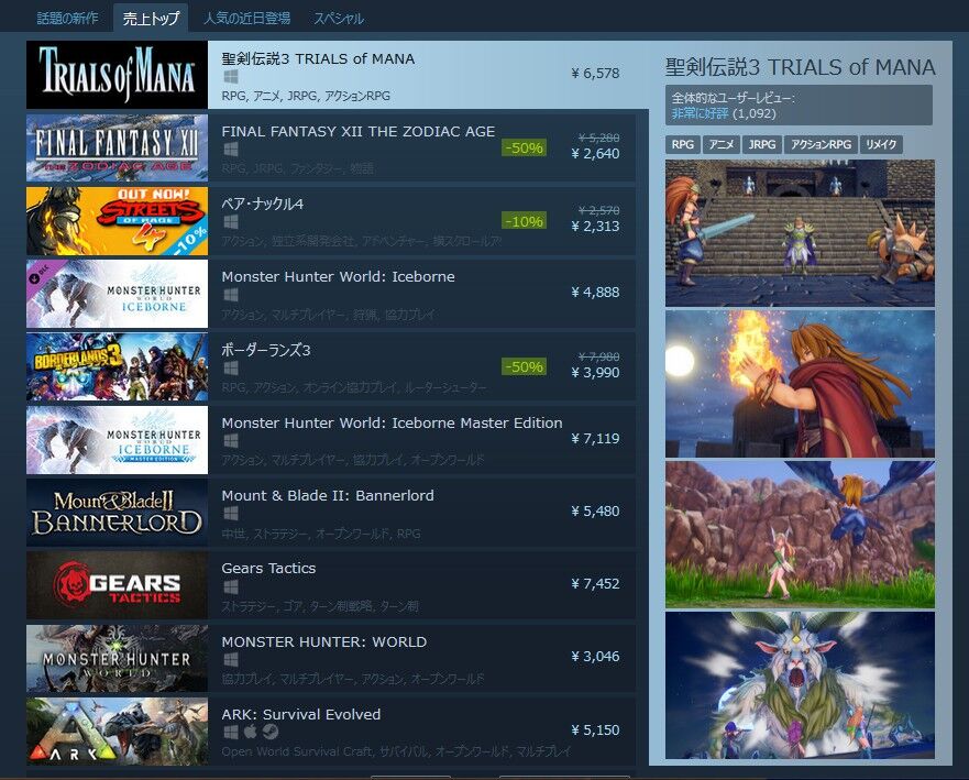 聖剣やったことなかったから試しに体験版やってみて合わなかったから買わなかったけどこんなに人気だったんだな…