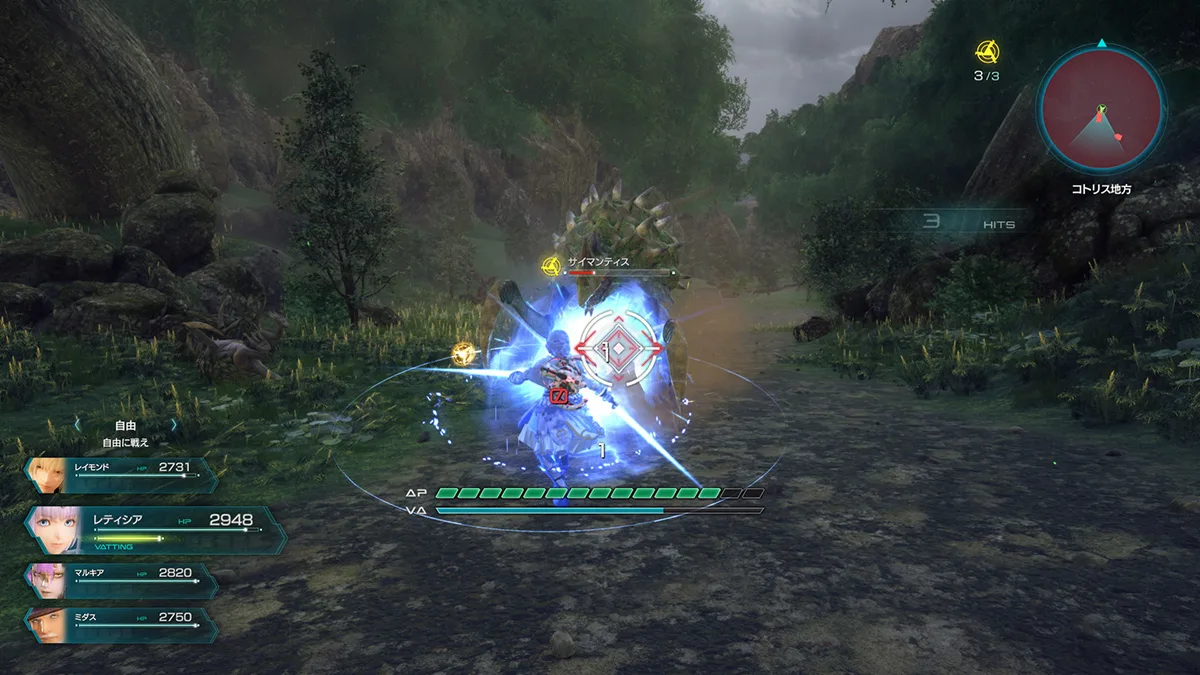 戦闘時、VAチャージ中に敵の攻撃を無効化するVAシールドを展開できる。敵の近接攻撃を弾いて怯ませることも可能だ。