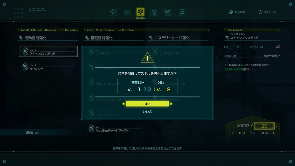 キャラクターのレベルアップで蓄積するSPを使用すると、多彩なスキルから選んで自由に強化できたり、スキルツリーを通じて新たなスキルを習得したりすることができる。