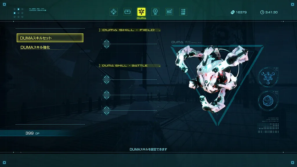 DUMAを育成することで、戦闘をより有利に進められる。晶紋石(しょうもんせき)を集めることで蓄積されるDPを使用してDUMAを育成すれば、スキルの獲得や強化が可能。