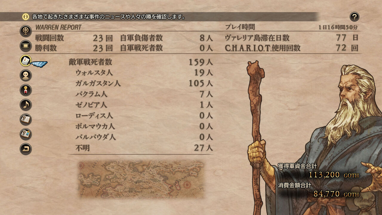 これまでの出来事や登場人物のプロフィール、各地で起こる事件のニュースなどを確認したり、ゲームの遊び方やプレイに役立つ情報などを、データベースとして活用できるように用意されているのが「ウォーレンレポート」です。