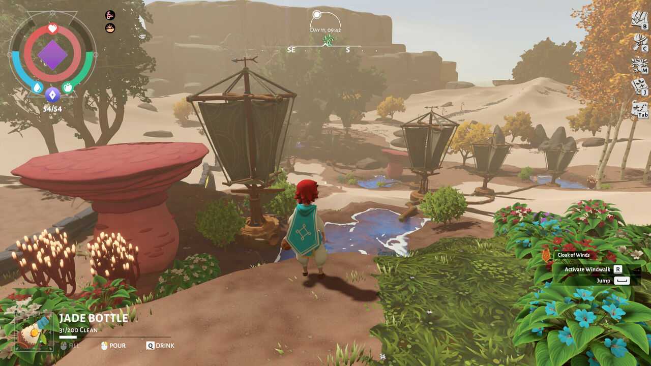 自然の流れに任せるもよし。自分好みの庭に仕上げるもよし。構造物や道具を作成して、地形を装飾し、形を整えよう。運河にかかる橋や、ランタンが点在する歩道、門付きの漆喰の壁、ハチを庭に蘇らす魔法のシギル、ため池に流れ落ちる滝など。さまざまなものを作ってみよう。織機を作成して、豊富な種類の衣装を編み、砂漠をスタイリッシュに旅しよう。