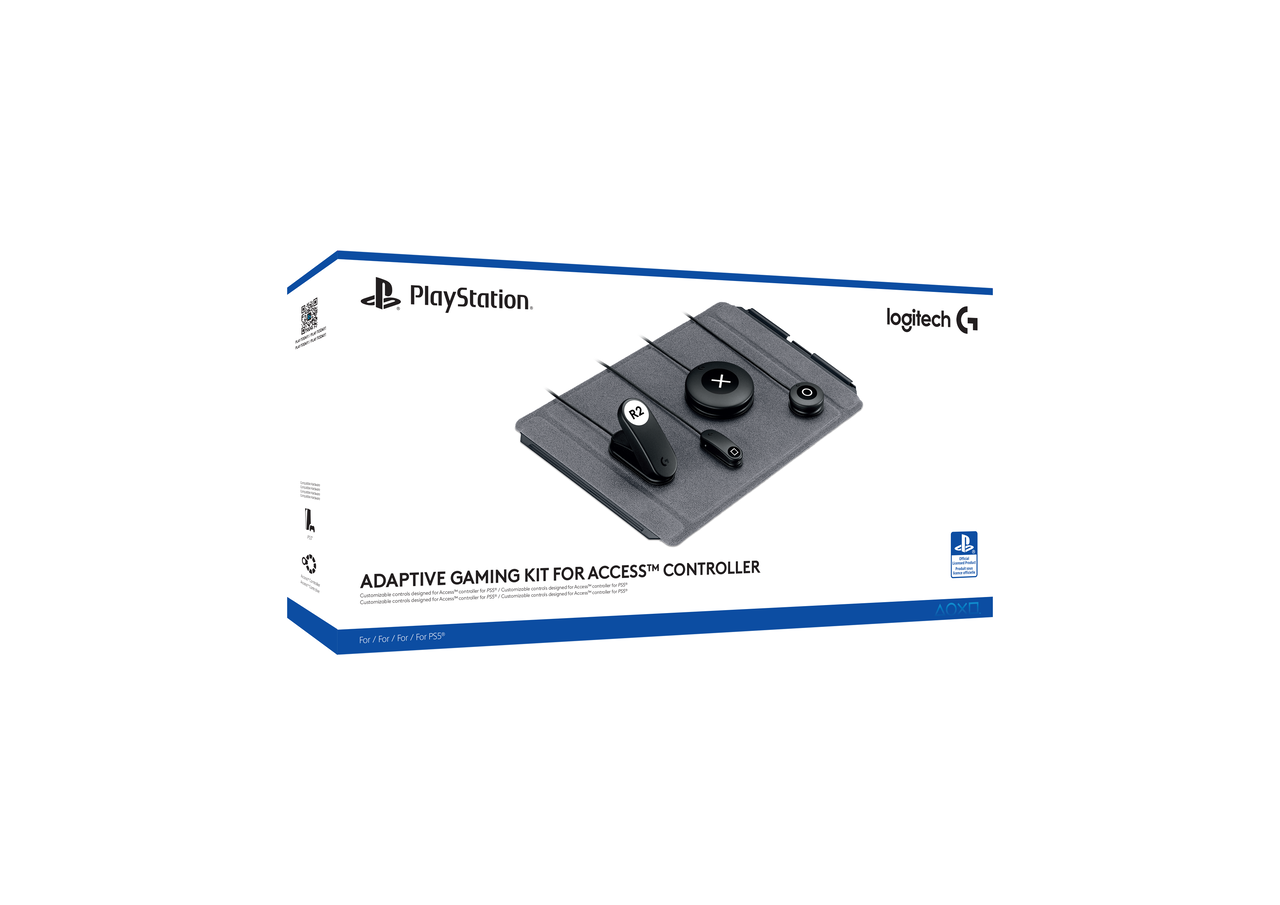 Access コントローラーは、追加のデバイスを接続することなくご利用いただけますが、アクセシビリティコミュニティーの多様なニーズにも対応できるように設計しています。今回は、LogitechがSIEおよびアクセシビリティコミュニティーと協力して開発した公式のアクセサリーキットとして、Access コントローラー用 「Logitech G Adaptive Gaming Kit」(※1)をご紹介します。