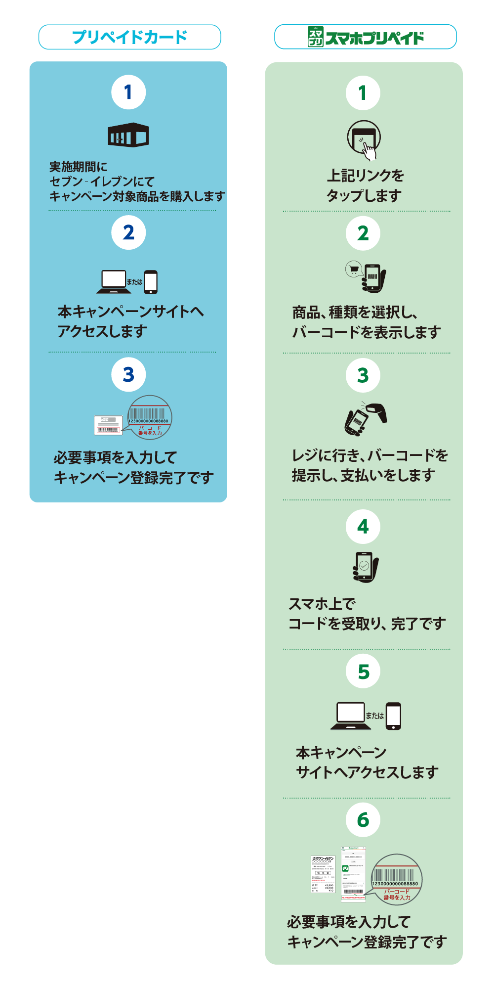 キャンペーン期間中、 セブン‐イレブン各店舗にて下記いずれかの商品を購入し、本キャンペーンサイトにてバーコード番号をご登録いただくと1,000円分のコードを全員にもれなくプレゼント!