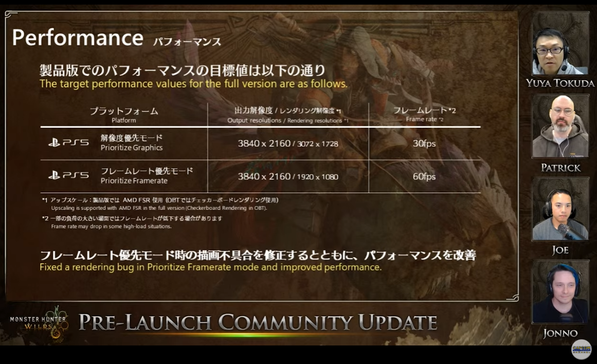 『モンスターハンターワイルズ』OBTからの改善内容まとめ。PS5でのモード別フレームレート目標値発表、PS5Pro対応も明言