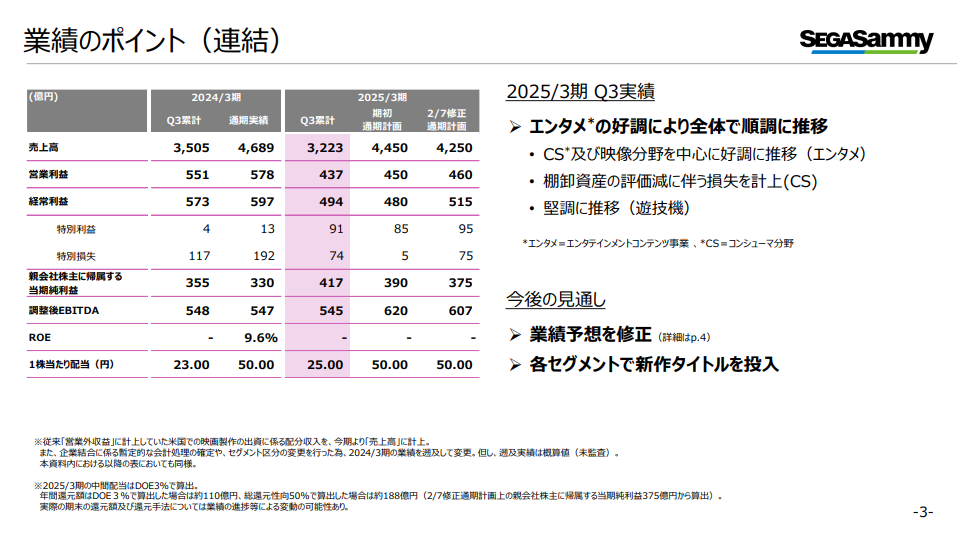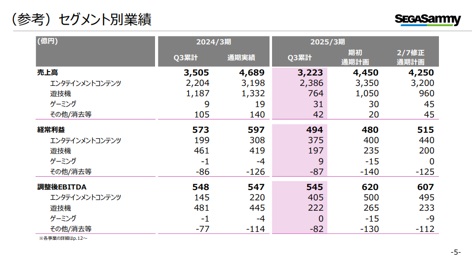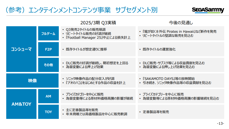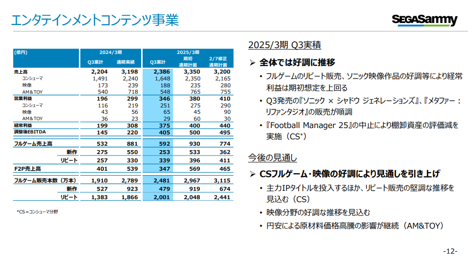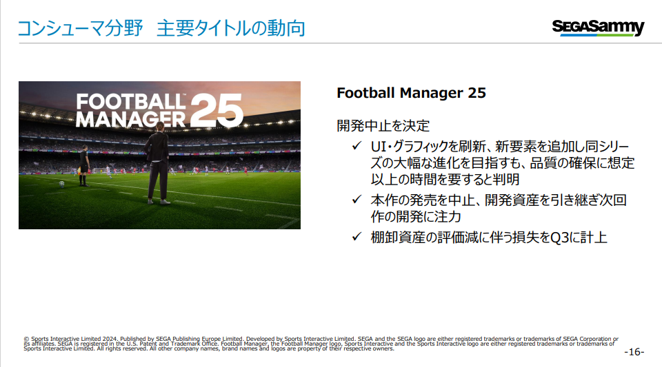 [セガサミーHD]2025年3月期第3四半期 決算関連資料公開、コンシューマ分野は引き続き好調。『Football Manager 25』は中止のアナウンス