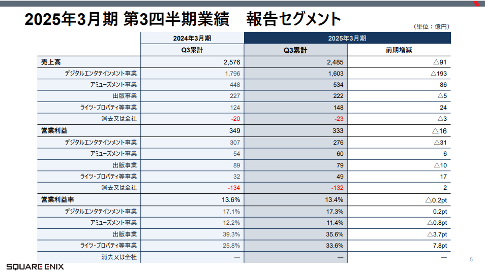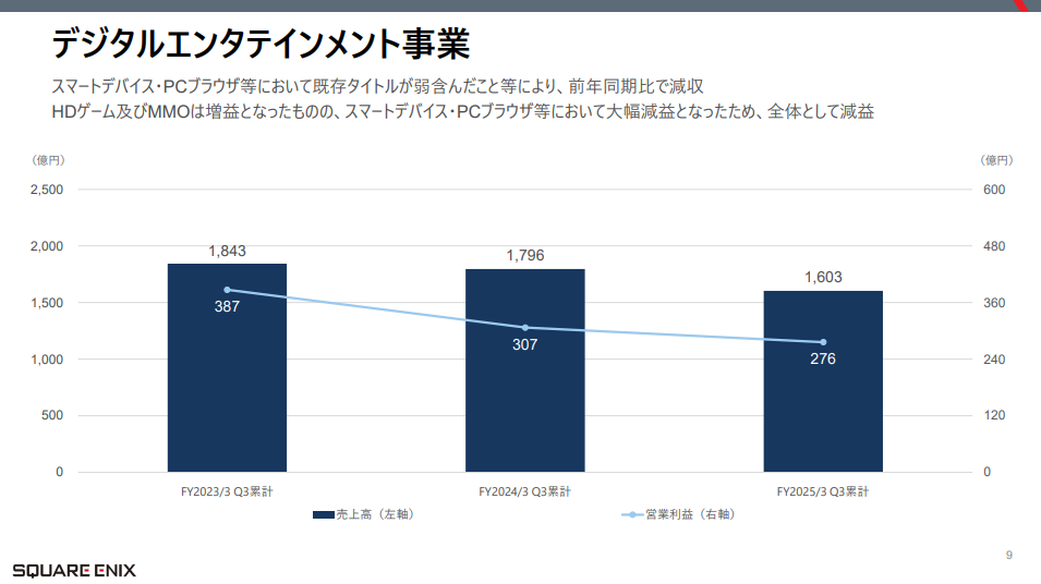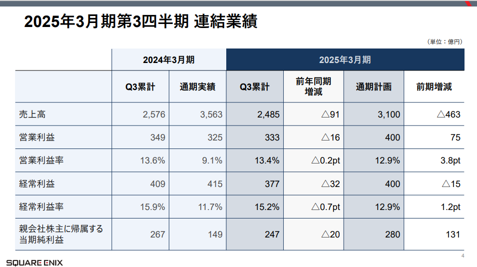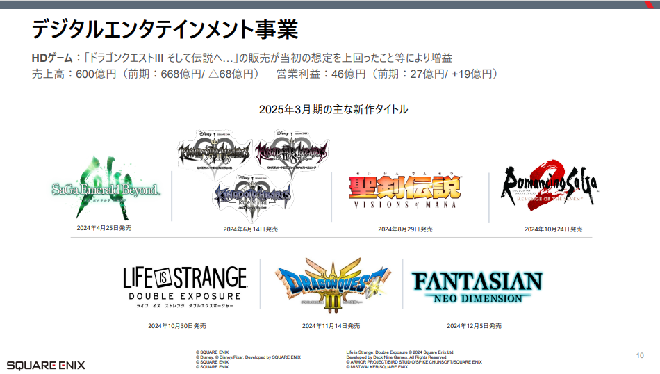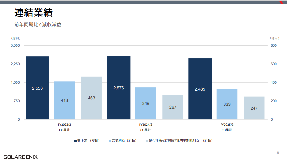 [スクエニHD]2025年3月期第3四半期 決算関連資料公開、『ドラゴンクエストⅢ』などが増益に寄与