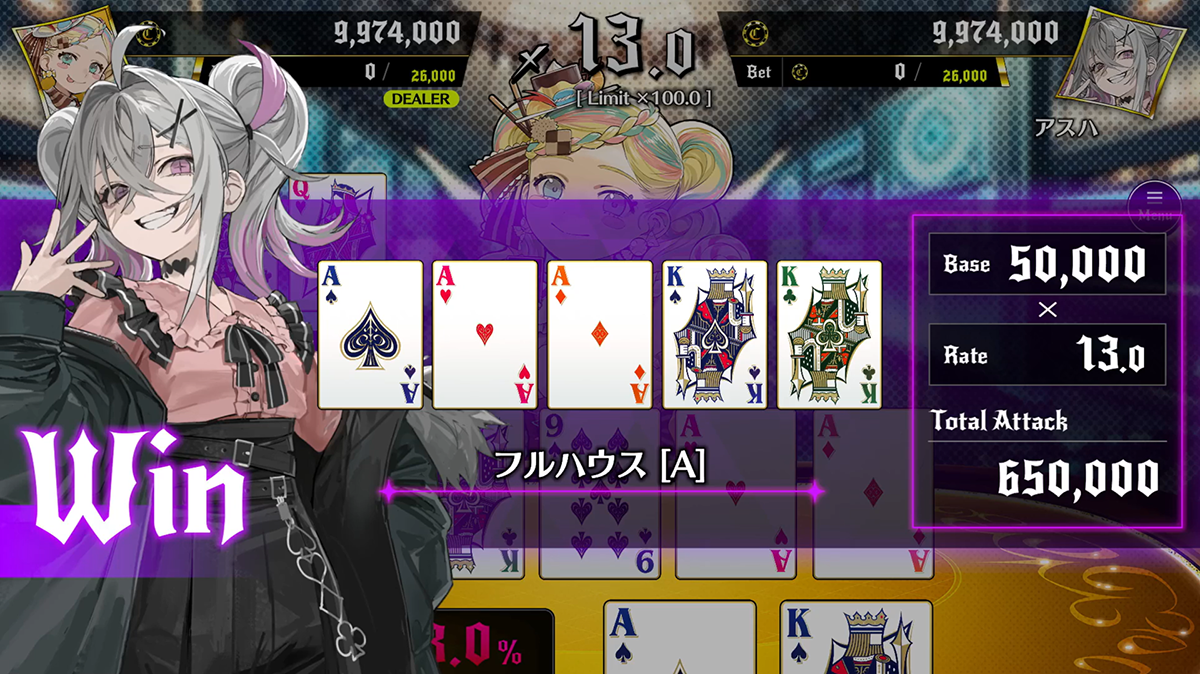 ポーカーの凄腕揃いですが、対決の前にしっかりと準備を行ってイカサマを暴き、必殺のオールインで魔女を奈落の底に沈めましょう。