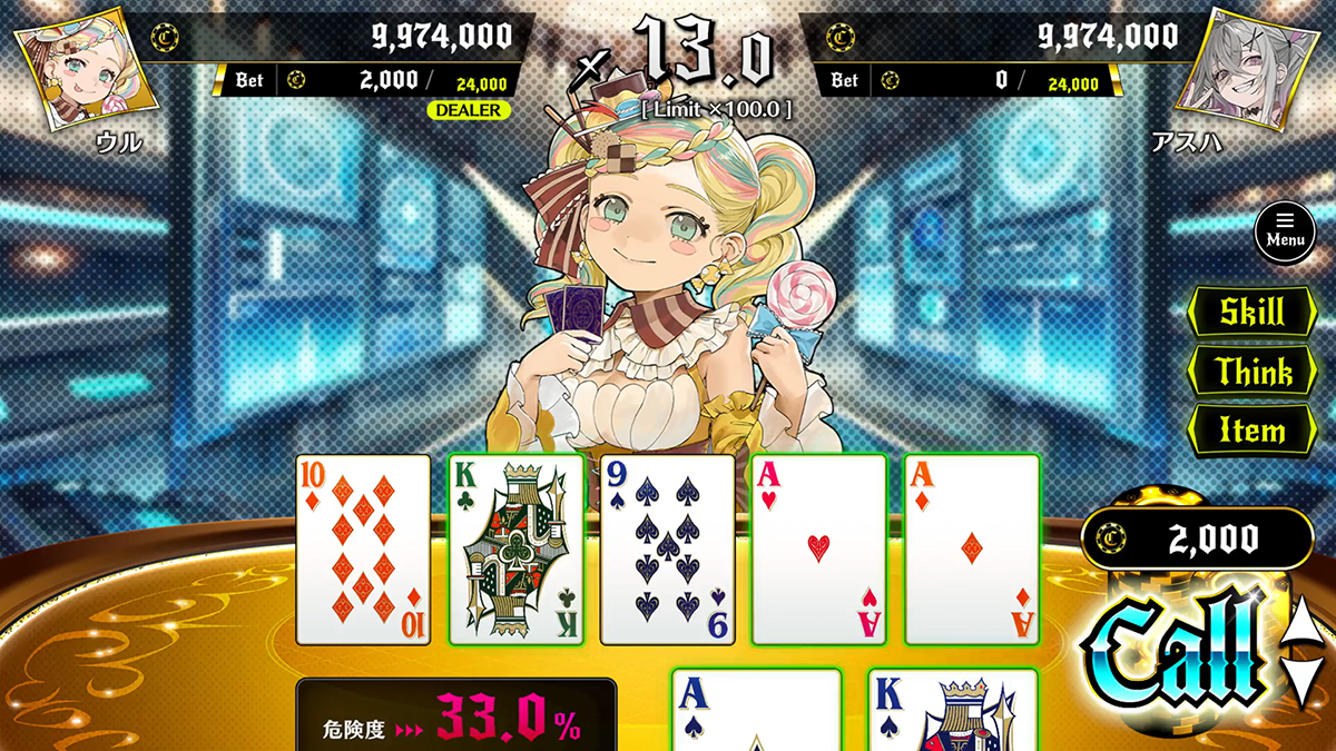 さまざまなスキルを用いてポーカーで無双し、”街”を支配する魔女たちのイカサマを暴き、オールインを駆使して破産させ、ギャンブル特区の覇者となりましょう。