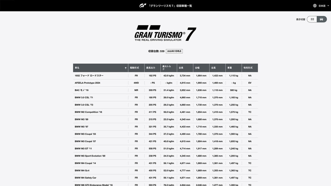 『グランツーリスモ7』公式サイトで収録車種リストが公開に!総数530台超え(※2025年7月時点)の詳細情報が写真付きで掲載