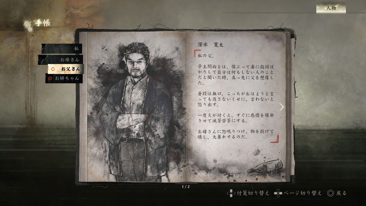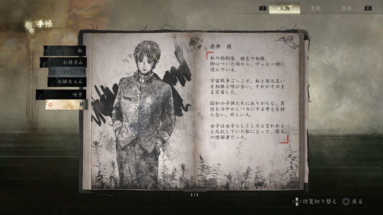 手帳では人物やアイテムなど各種情報を見ることができます。