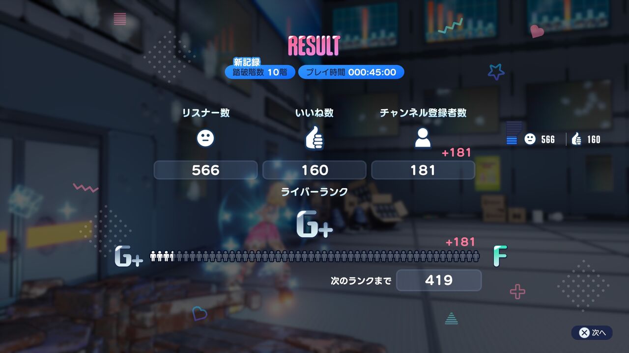 配信ランクや、戦闘で得たお金やアイテムは次の強化で使えます。