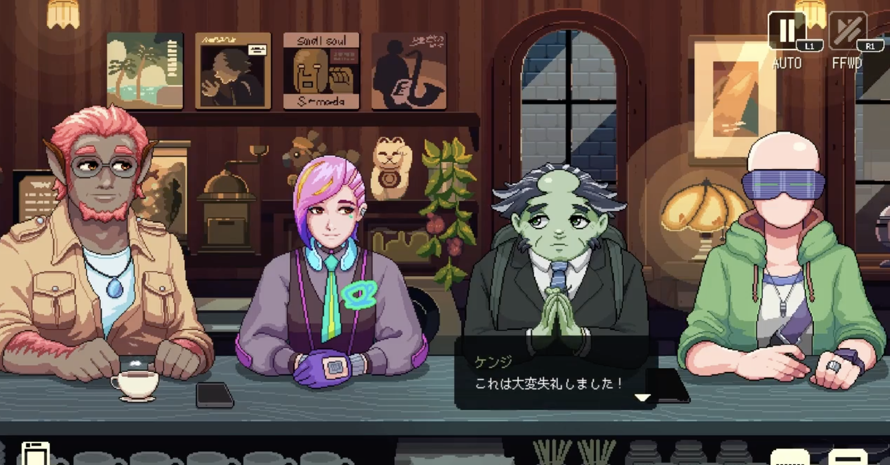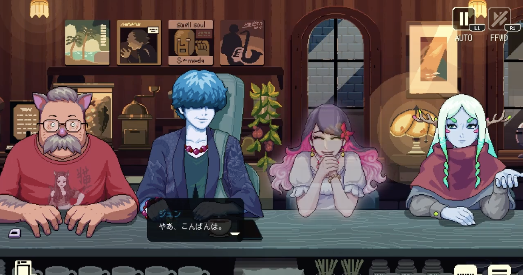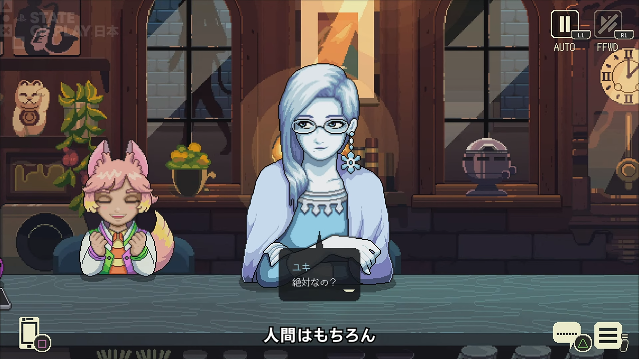 その後、世界中からクリエイターが集まりました。日本在住のピクセルアーティスト石田芙月は背景、ドリンク、一部キャラクターを担当。ロンドンのキャラクターアーティスト、ダン・レイニー。アメリカ在住のライター、ジョリー・メンゼル。多国籍チームならではの視点とエネルギーが、作品の奥行きをさらに広げてくれました。音楽はもちろん、シリーズに欠かせないアンドリュー・ジェレミー(AJ)が再び担当。彼の繊細で温かいサウンドが、今回も「コーヒートーク」の空気を完璧に作り出しています。