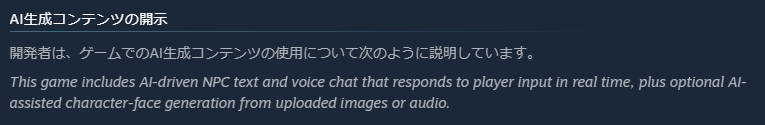 『Clair Obscur: Expedition 33』のSteamのページには生成AIの記載は無いのですが