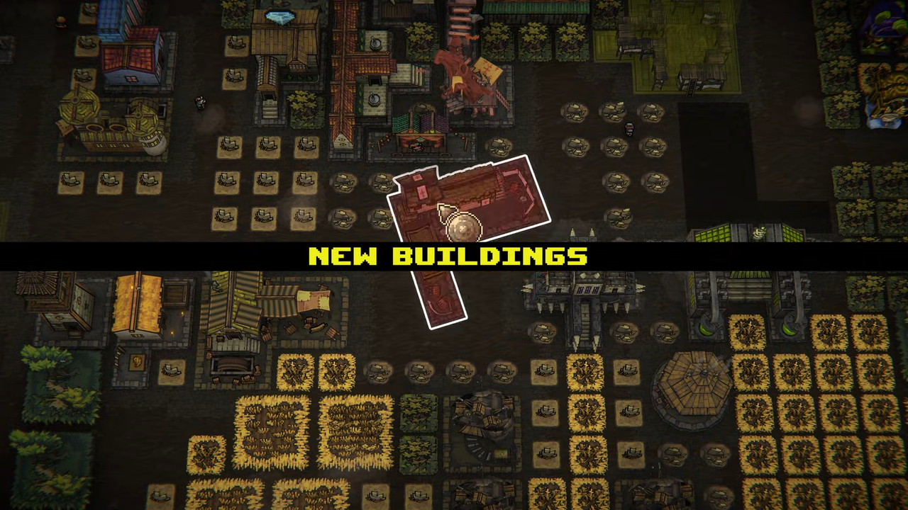 70以上の建設物で「New Ballbylon」を拡大していこう。発展していくとボーナスが手に入ったり、パワーアップや新キャラクターを解放したりできる! コミュニティが拡大すれば、待機しているヒーローに自動タスクを与えることができ、穴に潜っている間も資源を集めることが可能になる。