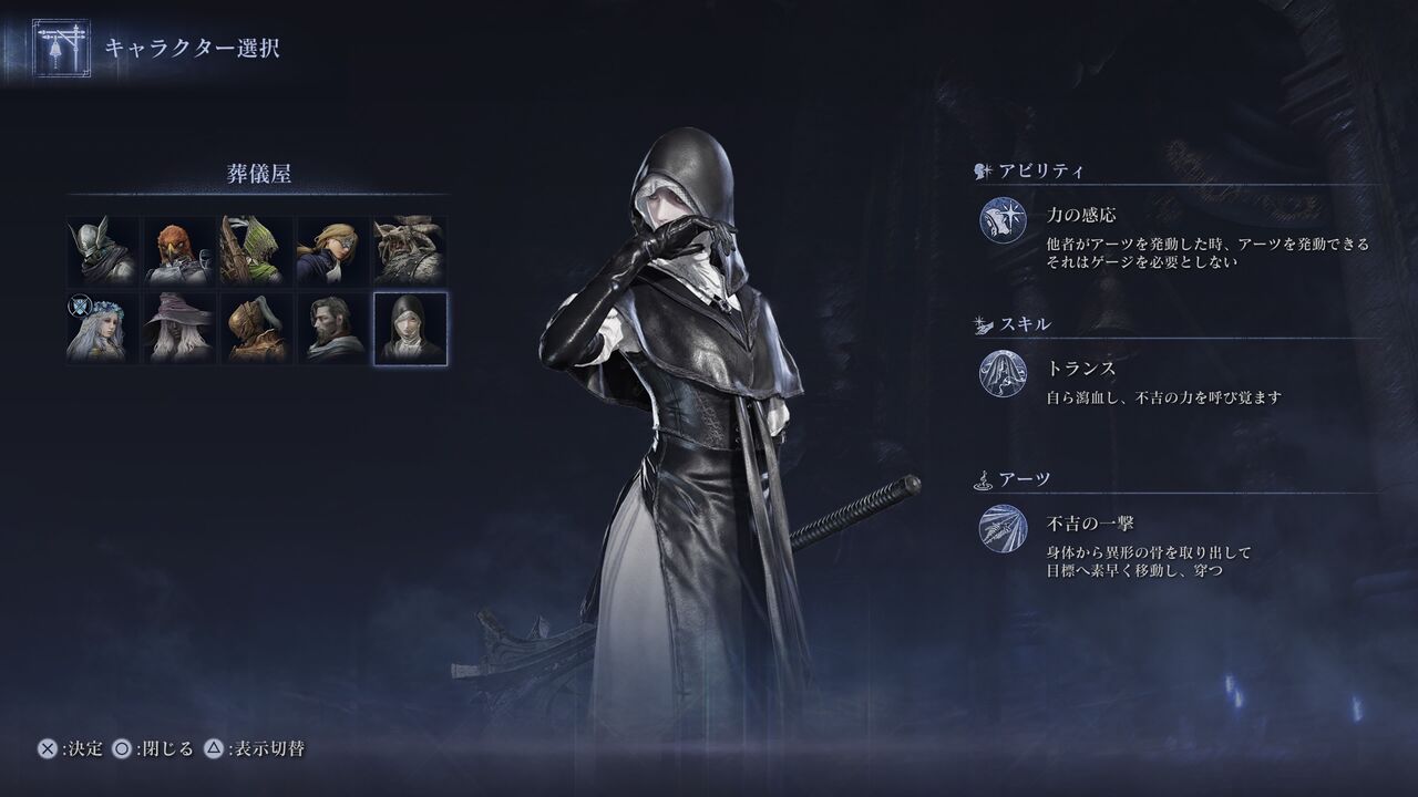 アーツ:「不吉の一撃」身体から異形の骨を取り出して目標へ素早く移動し、穿つ