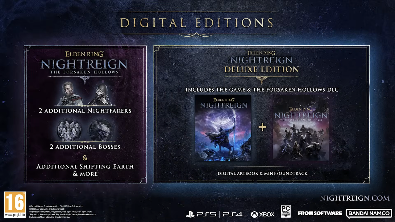 ※本編とデジタルアートブック&ミニサウンドトラックに加え、後日配信予定の追加DLCがセットになった「ELDEN RING NIGHTREIGN DELUXE EDITION」もございます。ご購入の際にはご注意ください。