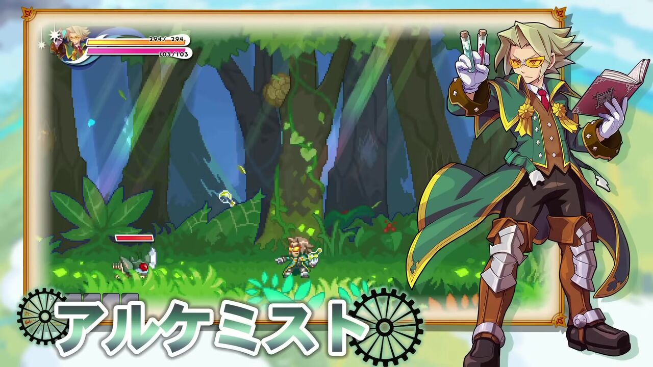 本作は、崩壊した王国を復興するのが目的のアクションRPGです。2D横スクロールアクションの冒険で素材を集め、王国を復興するシミュレーションパートでキャラクターたちを育てて王国を復興しよう!