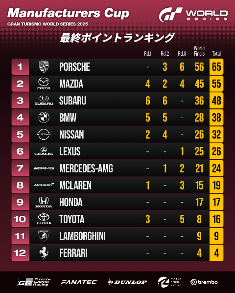 グランツーリスモ ワールドシリーズ 2025 – マニュファクチャラーズカップ チャンピオン