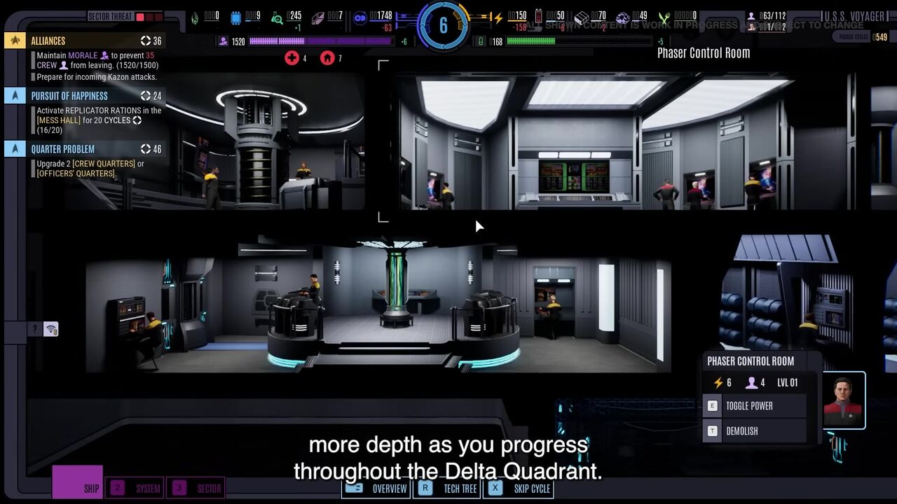 さまざまな分野の研究を加速せよ。新たな技術や改良されたレイアウトは、艦を強化するだけでなく、乗組員の士気も高めてくれる。ボーグの技術のように異質で危険な研究にさえも手を伸ばすことができる。艦長として、君はその可能性を選ぶのか、それとも危険性を理由に退けるのか。