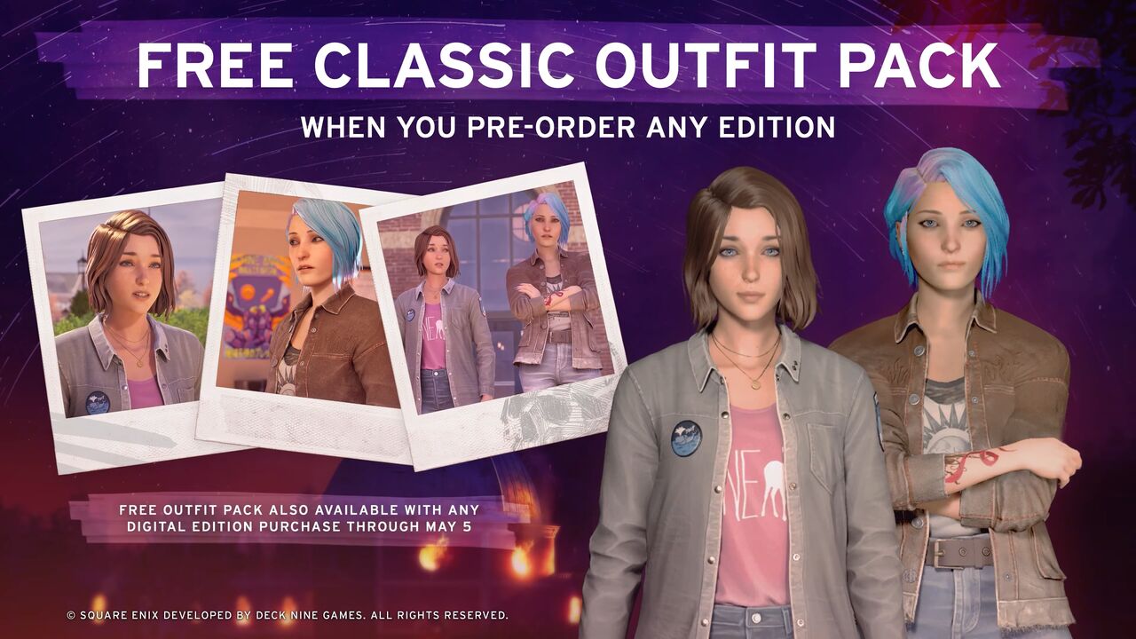 ★『ライフ イズ ストレンジ リユニオン』を予約して、マックスとクロエのクラシックアパレルDLCを入手しよう。日本時間5月5日18時59分までにゲームを購入した場合もクラシックアパレルDLCを入手できます。