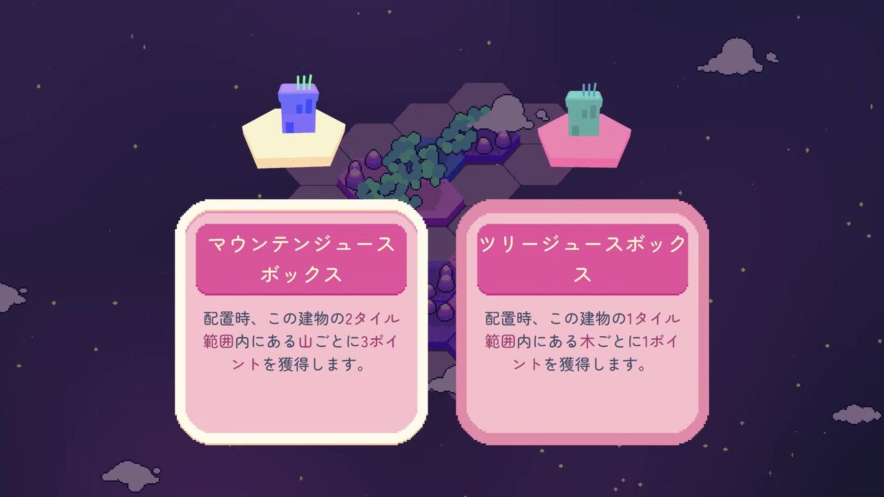 仕事が始まると、あなたには昔ながらの少し古いコンピューターが与えられます。古いからといって甘く見てはいけません。このコンピューターがあれば、色んな六角形のタイルを置いて惑星を創れるのです!