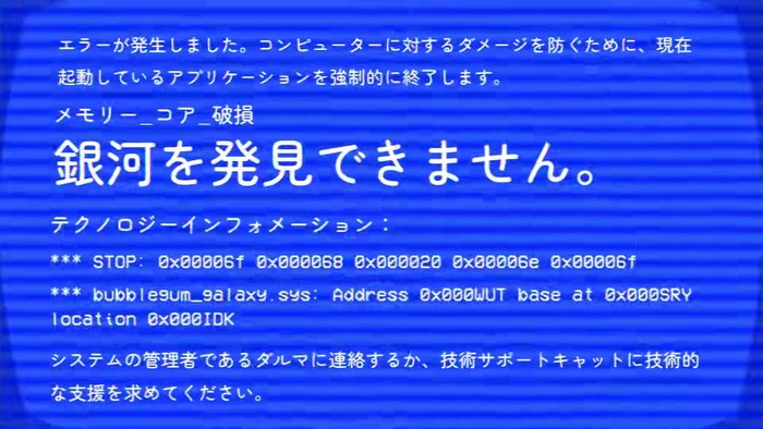 あなたの実習が始まったあの日、「原因不明のエラー」により宇宙間サーバーがダウンしてしまい、バブルガム ギャラクシーのデータが完全に削除されてしまいましたよね。ですが、その事件がなければこのゲームも生れていなかったわけですし、不幸中の幸いとも言えるかもしれません!さて、最後まで読んでいただいてありがとうございます!ここでちょっとしたヒントを一つ…もし優秀な惑星創りデザイナーであることを証明できたら、あの日データが削除されてしまった事件の真相も分かるかもしれませんよ…?