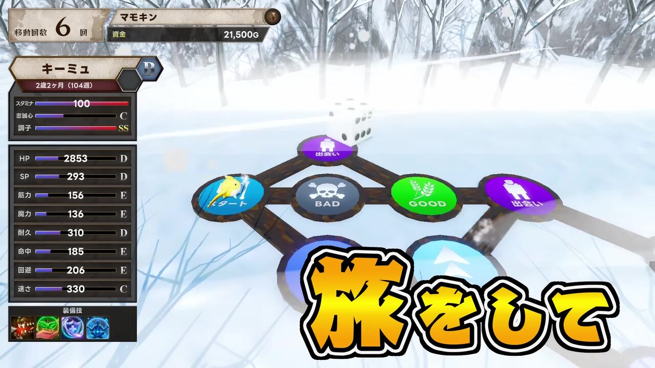 マモンを鍛える方法は、週毎にホームで何をするか決める訓練だけじゃない。ライバルと戦う大会はもちろん、古のマモンが眠ると噂される未開の地をスゴロク形式で進んで行く遠征でマモンはさらに強くなる。