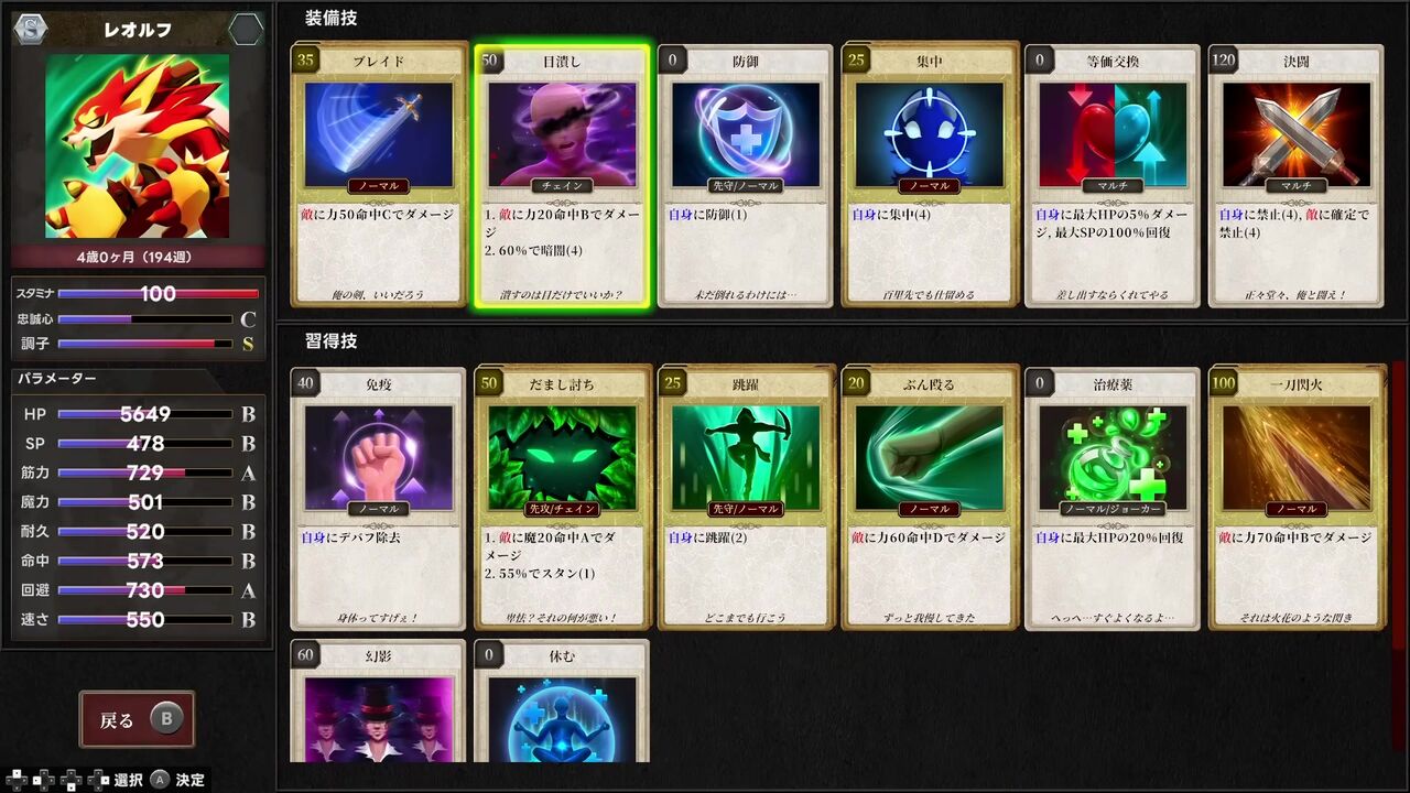 攻撃、防御、強化、弱体化だけじゃない。攻撃には技を利用するためのSPが必要になり、強力な技ほどSP、場合によってはそれ以上の犠牲が必要になるため、技を繰り出すタイミングが命運を分ける。