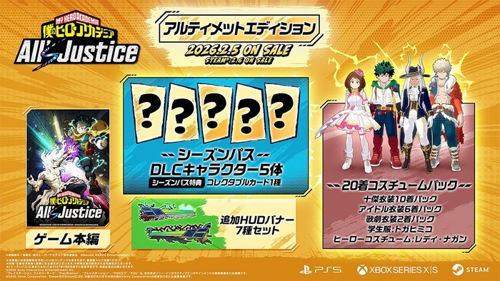 3vs3対戦アクション『僕のヒーローアカデミア All's Justice』2/5本日リリース!有料ダウンロードコンテンツ第1弾のキャラクターも判明