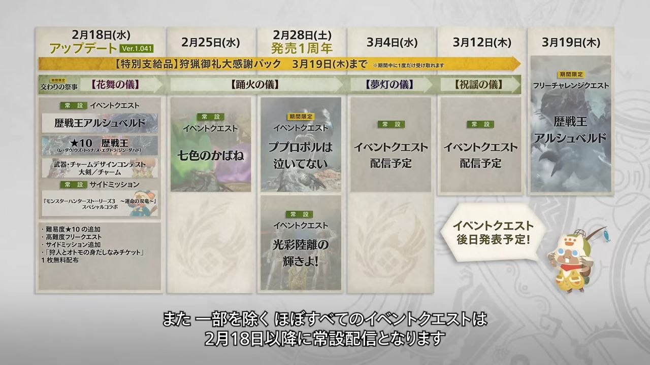 『モンスターハンターワイルズ』2/18アップデート詳細が公開!★10歴戦王アルシュベルド、『モンスターハンターストーリーズ3 ~運命の双竜~』コラボ等。拡張コンテンツは夏頃に続報