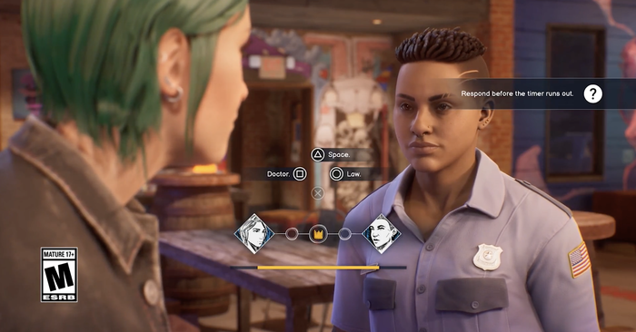クロエがプレイアブルキャラクターになったことを考えると、『ライフ イズ ストレンジ ビフォア ザ ストーム』で登場した、会話パズルベースの「バックトーク」能力も搭載されているのは当然と言えるでしょう。ただし、デモ版での導入部では、クロエの思い通りにするために辛辣な皮肉をぶつけるというよりは、真実を曲げてカリスマ的に説得する能力に重点が置かれていました。