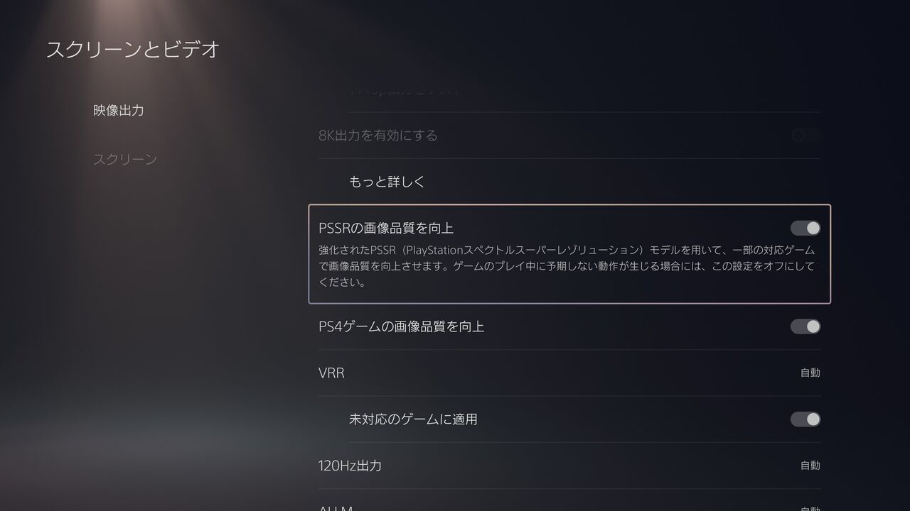 PS5 Proの設定画面で「PSSRの画像品質を向上」というオプションを選択することで、