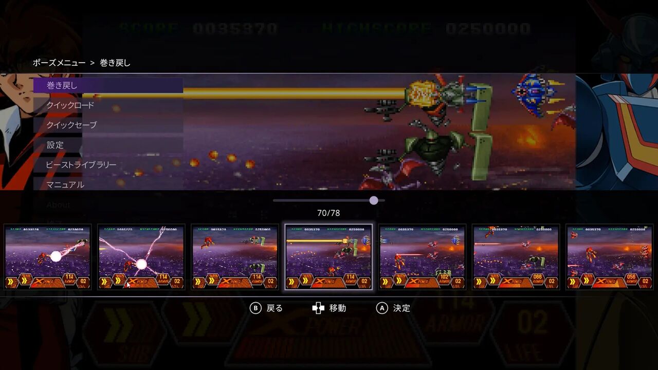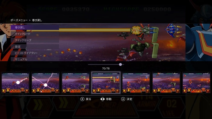巻き戻しメニューで任意の場所からやり直せる