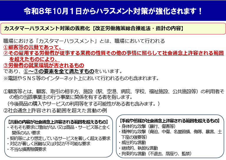 2026年10月に企業はカスタマーハラスメント対策が義務化されます。