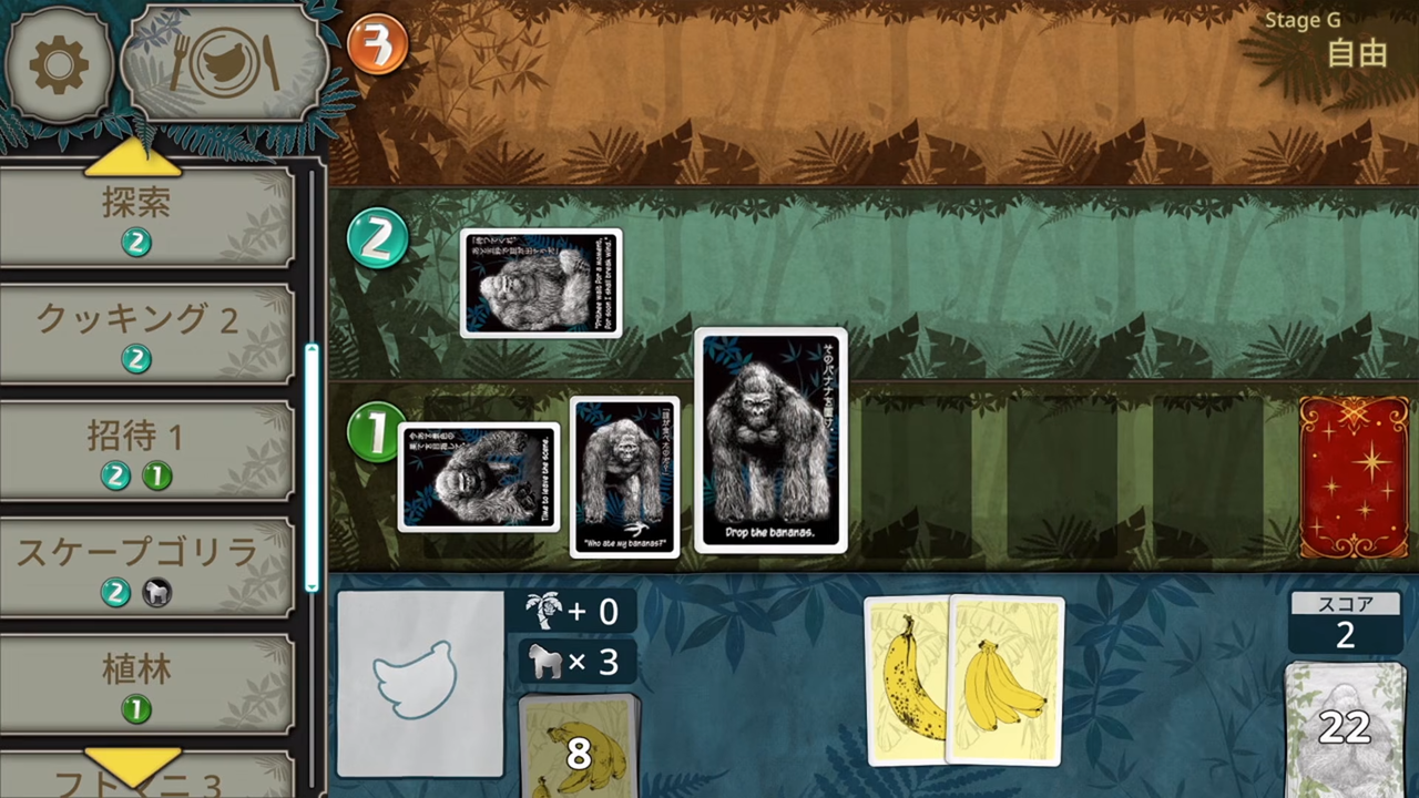 【やってみた】3/19リリース、一人用ゴリラ増やしカードゲーム『ゴリティア』7枚のゴリラを並べよう!バナナが切れたらおわり
