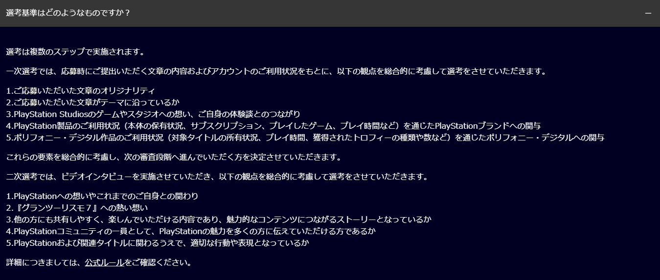 4.PlayStationコミュニティの一員として、PlayStationの魅力を多くの方に伝えていただける方であるか
